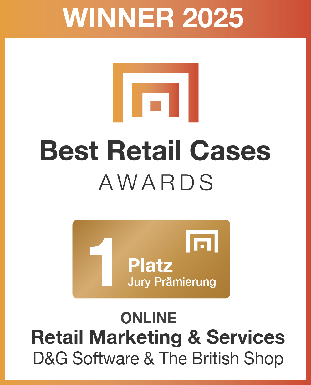 Der Best Retail Cases Award wird regelmäßig an die besten und innovativsten Lösungen, die der Handel und die Hersteller derzeit im Einsatz haben, vergeben. 2025 konnten wir die Jury gemeinsam mit unserem Kunden THE BRITISH SHOP und einem Projekt zur automatisierten, personalisierten Kundenansprache im E-Commerce überzeugen und wurden mit dem ersten Platz in der Kategorie "Retail Marketing & Services" ausgezeichnet.